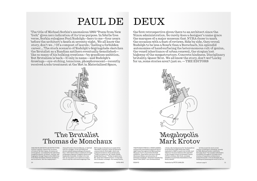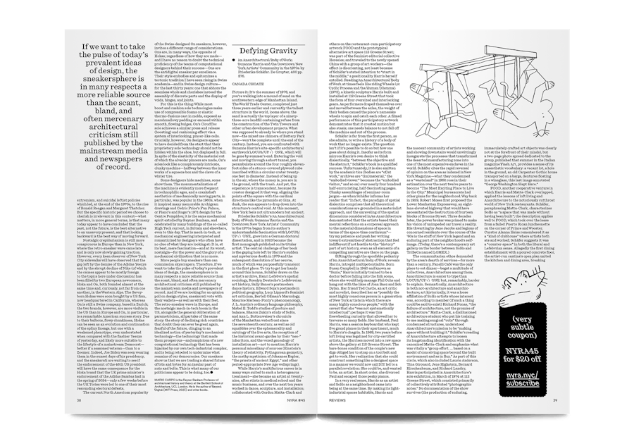 As its name would suggest, the New York Review of Architecture reviews architecture in New York. But this big, clever, funny magazine does much more too, delivering smart and gloriously overblown criticism on everything from movies, to rubbish collection, to cafes in banks.