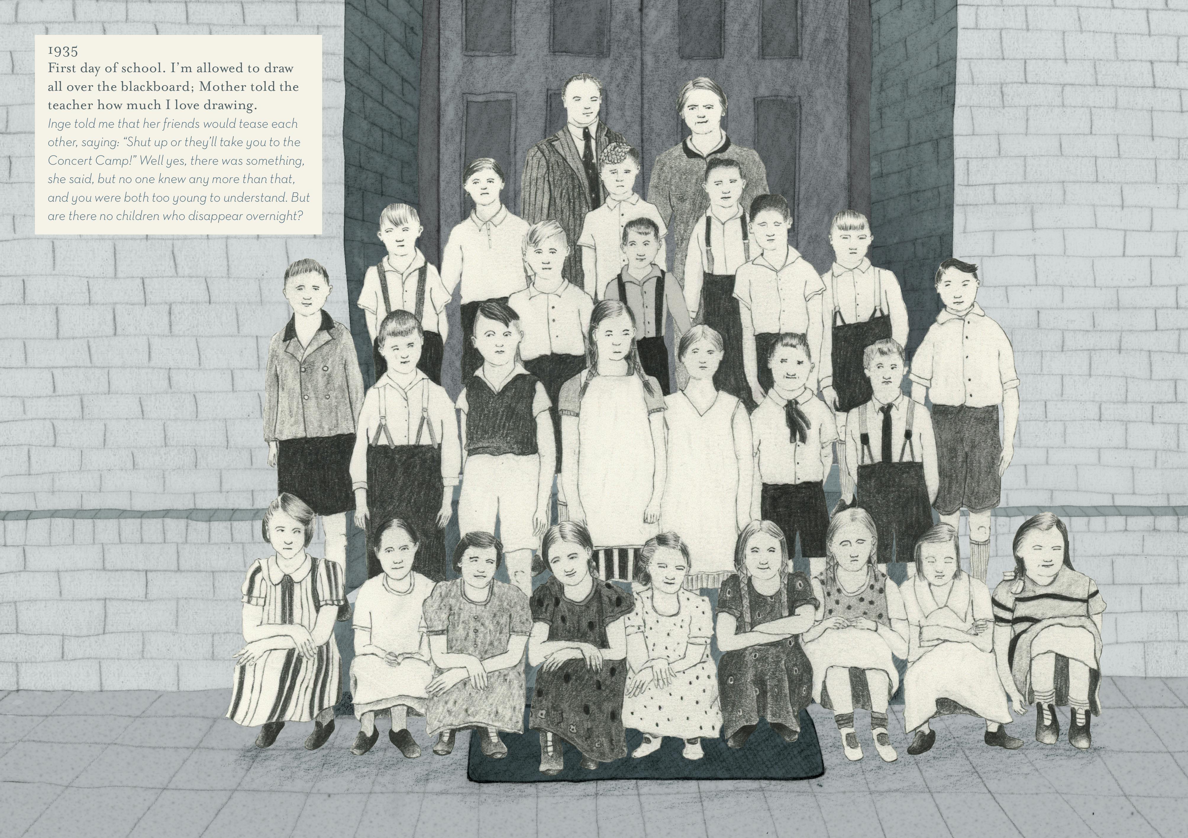 “Serena Katt’s upcoming graphic novel is a really bold investigation into her own family history. Serena’s German grandfather spent his entire childhood in Nazi education facilities in the 1930s and 40s. When he died he left behind a short and fairly positive written record of his life — Serena wanted to build a fuller picture, so she interviewed her family and did research at the German Federal Archives. In her book, Serena includes her grandfather’s positive memories, but challenges them too. Here his recollections about his first day of school and how much he loved drawing are undercut by Serena’s question: ‘But are there no children who disappear overnight?'”