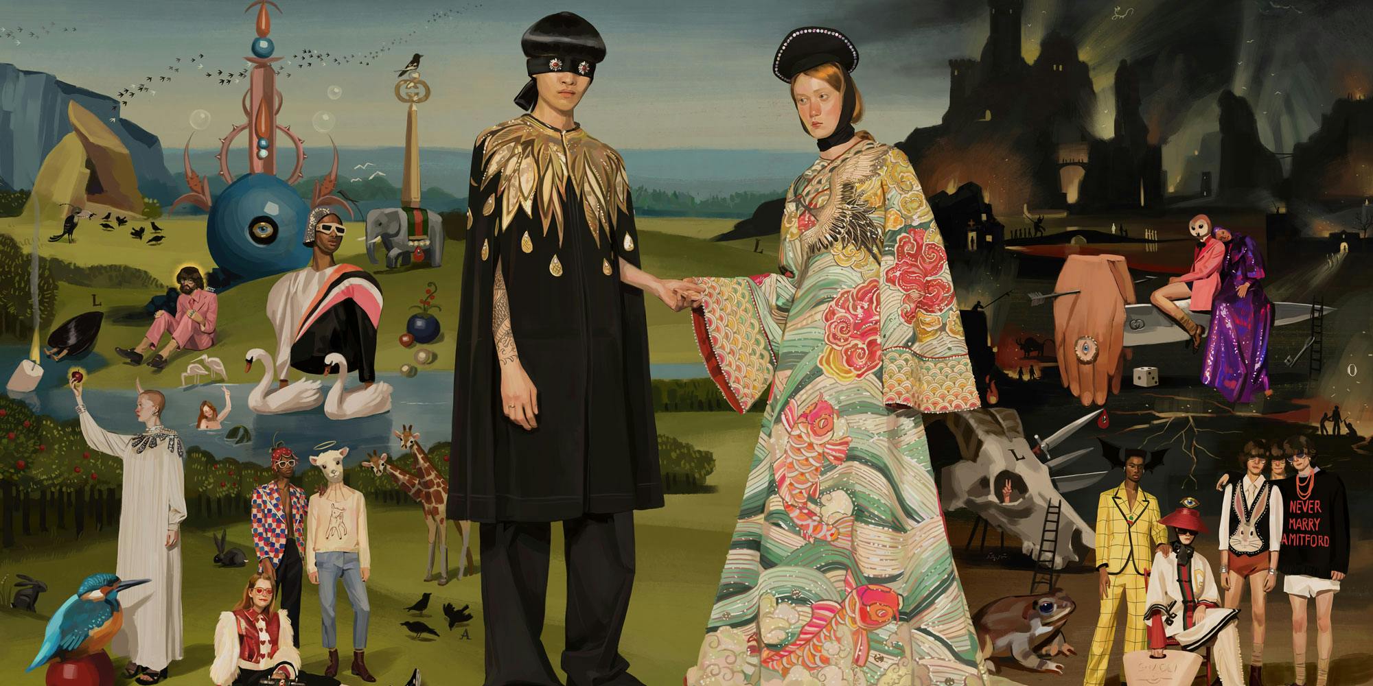 “We see fashion photography all the time, but fashion illustration is far less ubiquitous. Gucci have long been champions of forward-looking fashion illustration, and for their spring/summer 2018 campaign they didn’t use any photography at all. Illustrator Ignasi Monreal created a series of stunning digital paintings that, as our fashion editor Zoë Taylor explains, ‘mash up imagery from Old Master paintings with pop-cultural, alchemical and post-internet references’. Zoë reflects that this might be a view of things to come; fashion brands using illustration’s potential for storytelling to create campaigns full of drama and tension that go beyond the straight-up representation of clothes.”
