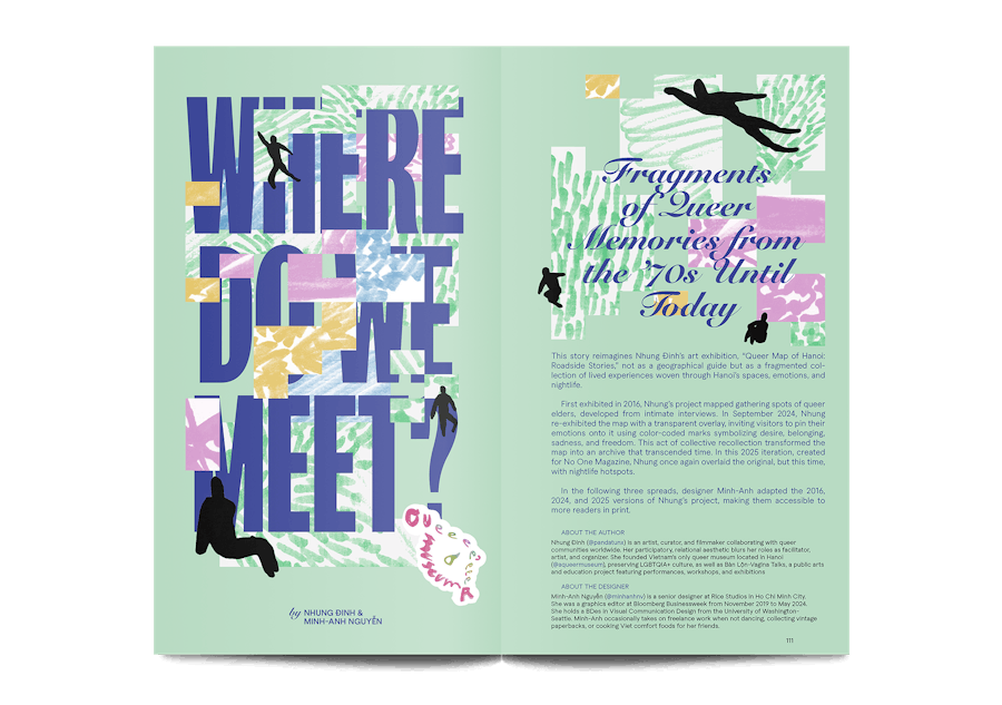 Each issue of No One sets out for a different city and reports on the queer nightlife it finds there. For this second issue the magazine travelled to Hanoi and Ho Chi Minh City to create a richly detailed picture of the overlapping scenes that have grown up within and between Vietnam’s most populous cities.