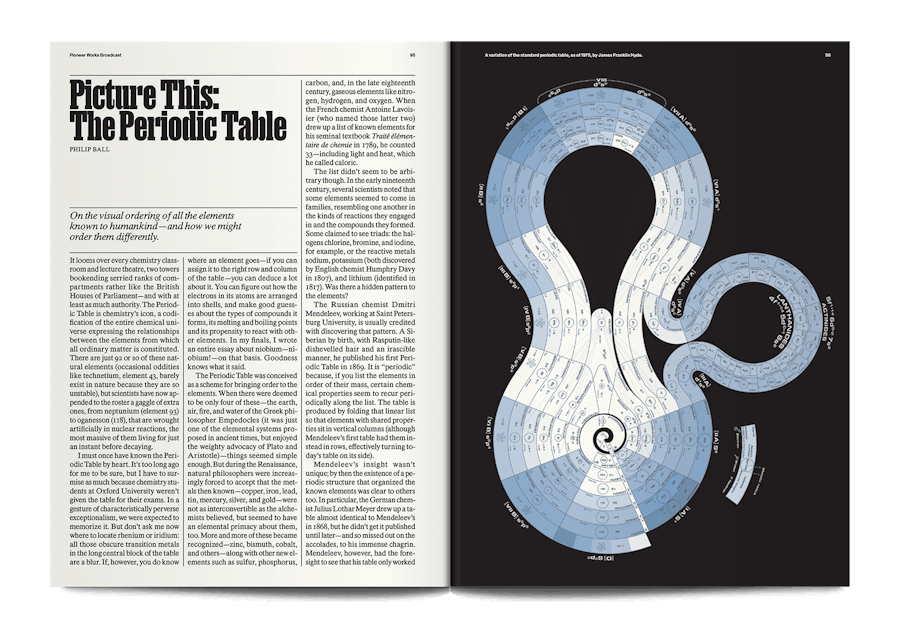 Taking an expansive approach to storytelling, Broadcast combines art and science as a way of looking beyond the everyday. Lots of magazines build their editorial around art, but I can’t remember the last time I read a story about the shape of the periodic table, let alone one that successfully explains how that shape, “encodes the character of the quantum atom”. It’s mind-blowing stuff, but rendered in totally accessible, entertaining text that’s as fun as it is enlightening.