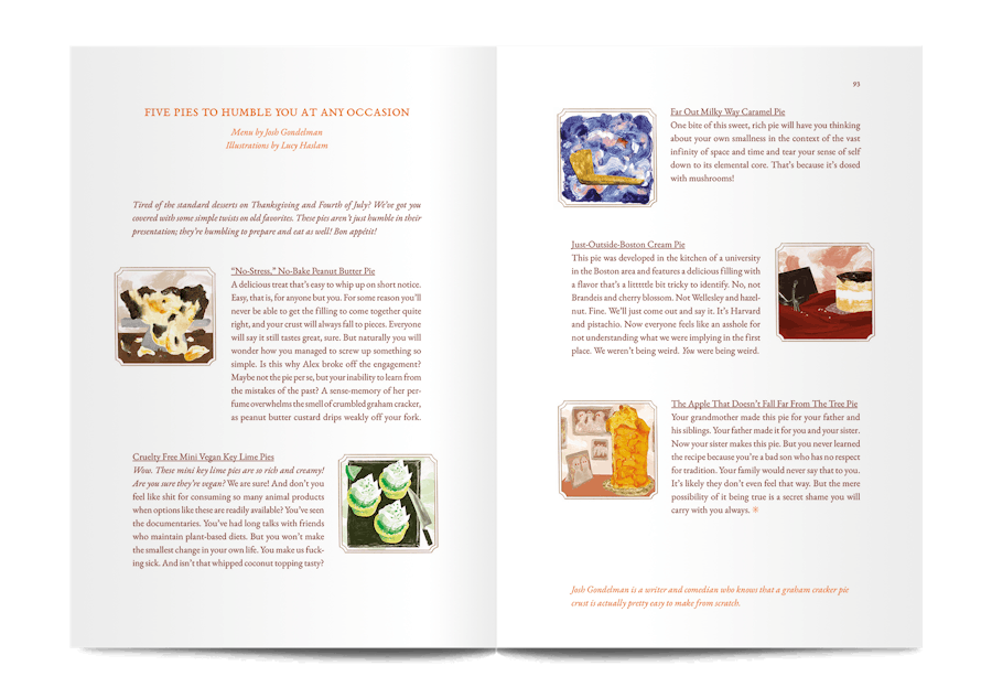 A lovely, literary food magazine published in Brooklyn, Cake Zine’s first two issues were dedicated to an appreciation of cake (‘Sexy Cake’ and ‘Wicked Cake’ respectively). But this third issue takes a different culinary direction, devoted to the crusty delights of pie, and the various interpretations of ‘Humble Pie’.